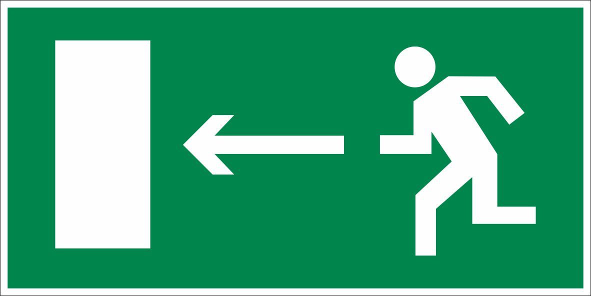 Знак безопасности E04 Направление к эвакуационному выходу налево (300x150, ПВХ 2 мм., Плёнка фотолюминесцентная ГОСТ 2018)