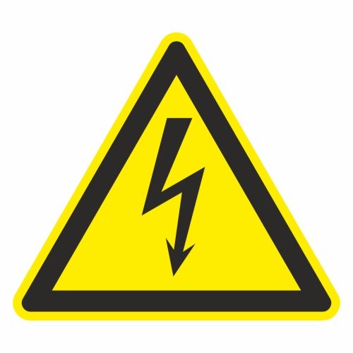 Знак безопасности W08 Опасность поражения электрическим током (150x150, Плёнка ПВХ)